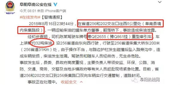 8月17日早上,阜阳阜南公安在线微博发布警情通报: