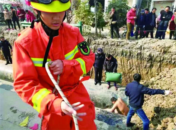 让现场人员头疼的是,怎样把他从坑底救上来?民警起初想用绳子将被困男子拉出,考虑到他伤势不明,担心救援过程中会对其造成二次伤害,所以不敢贸然动手,决定先稳定男子情绪,商议救援方案。辖区消防部门和120救护人员相继赶到现场。